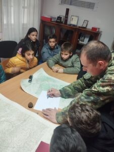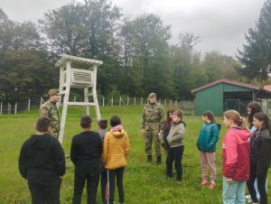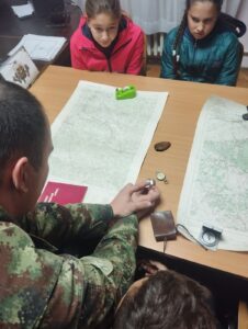 Циљ посете је да се ученици упознају са примењеном картографијом у војном позиву. Мајор Алексић и пуковник Мирковић су деци представили топографске карте, како се компас користи у оријентисању, како се помоћу курвиметра мере растојања на карти, како се оријентише у природи. Поред упознавања са елементима картографије, војници су ученицима показали локалну метеоролошку кућицу и псе чуваре.